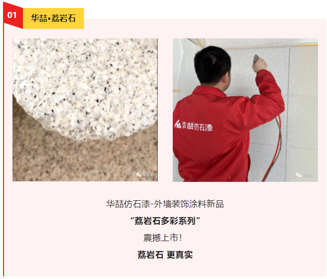 華喆荔巖石是新一代荔枝面仿石漆,甄選頂級(jí)天然彩砂+水性丙烯酸乳液+紫外線吸收劑研制而成,形成不規(guī)則仿大理石紋路和色彩;