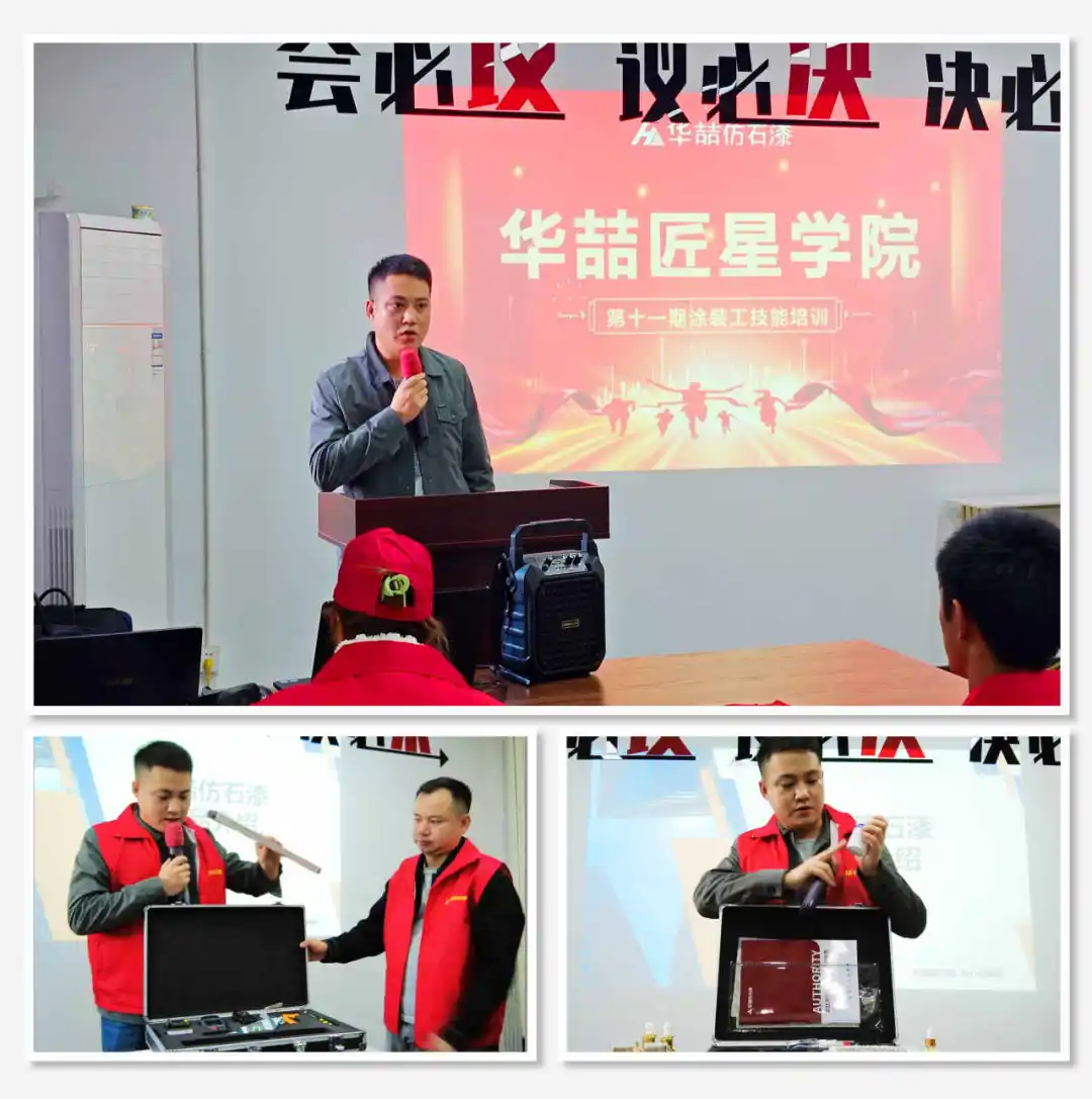 華喆仿石漆匠星學(xué)院第十一期開班儀式在晨光的映照下盛大開啟。全體學(xué)員身著整齊統(tǒng)一的服裝,以飽滿的精神狀態(tài)亮相。軍訓(xùn)式的開班儀式為此次培訓(xùn)拉開了充滿激情的序幕,學(xué)員們在儀式中展現(xiàn)出了涂工隊伍的嚴(yán)謹(jǐn)與團(tuán)結(jié),他們整齊的步伐和響亮的口號,猶如初升的朝陽般充滿活力,彰顯出蓬勃的朝氣和對未來的無限憧憬。這種軍訓(xùn)式的開班模式,旨在著重培養(yǎng)學(xué)員們的團(tuán)隊協(xié)作精神和嚴(yán)格的紀(jì)律性,為后續(xù)的培訓(xùn)和實際工作打下堅實的基礎(chǔ)。