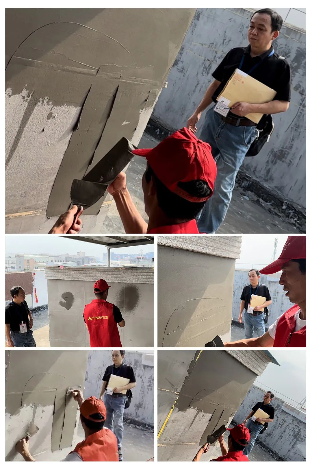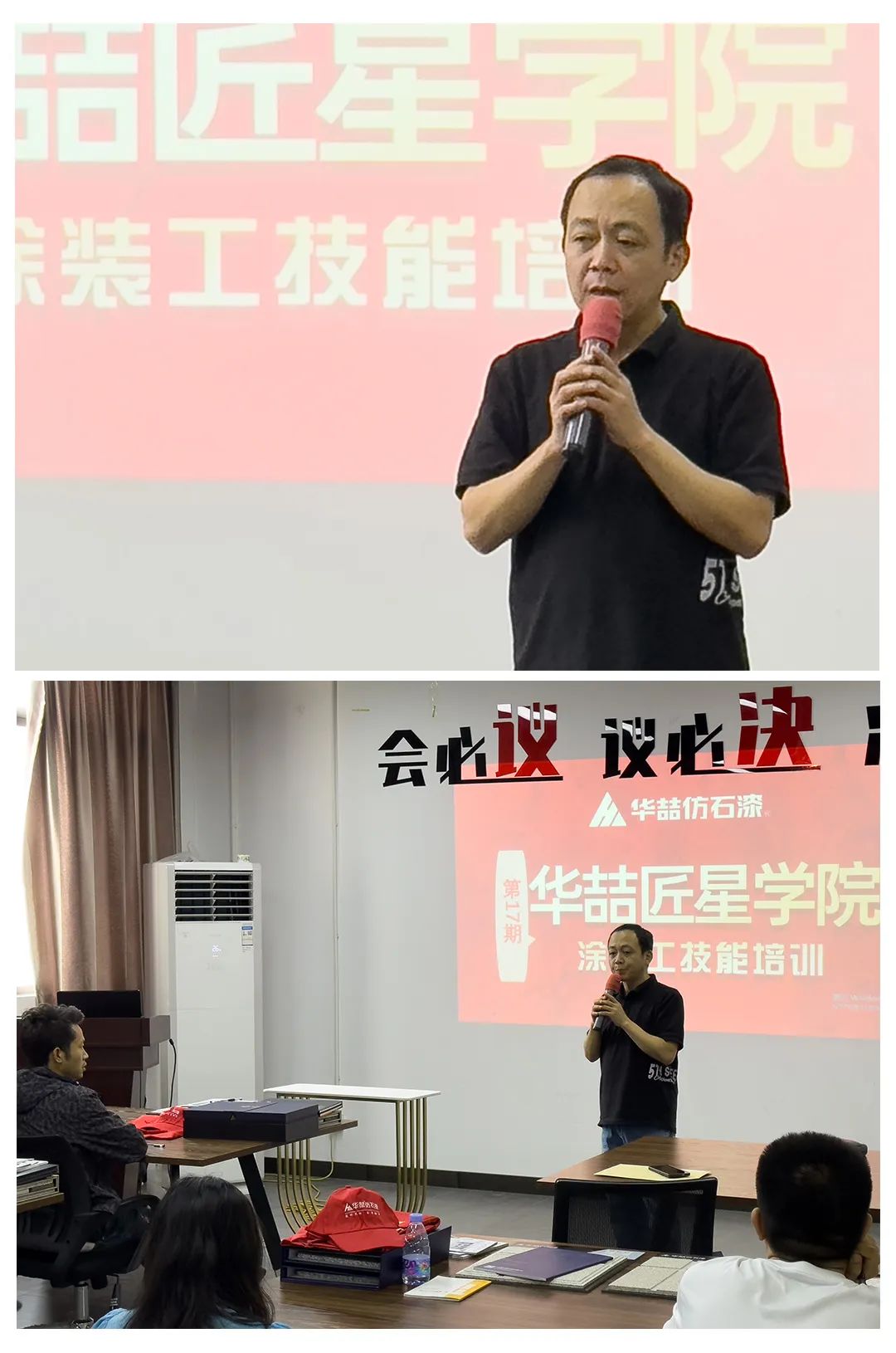 在匠星培訓(xùn)環(huán)節(jié)中,華喆技術(shù)領(lǐng)域的資深專家劉工,先為大家闡述仿石漆施工的理論知識。緊接著,他親自引領(lǐng)學(xué)員們邁入了實踐操作的全新階段。在劉工程師的專業(yè)細(xì)致指導(dǎo)下,學(xué)員們親自體驗了仿石漆施工的每一個環(huán)節(jié),從周密的材料準(zhǔn)備到精湛的施工技巧,每一個細(xì)節(jié)都經(jīng)過了嚴(yán)格的磨練與實踐,確保每位學(xué)員都能全面而深入地掌握仿石漆施工的核心技術(shù)。