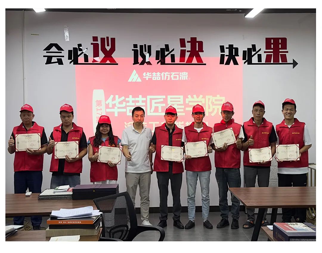 在四月芳菲漸隱,清淺初夏的美好日子里。華喆仿石漆匠星學(xué)院第十七期培訓(xùn)班如期而至,開啟了一段充滿活力與激情的涂裝培訓(xùn)旅程。在晨曦的照耀下,本期學(xué)員身著統(tǒng)一的制服,以昂揚的姿態(tài)迎接挑戰(zhàn)與學(xué)習(xí)。隨著一聲響亮的口號,培訓(xùn)活動在一片熱烈的氣氛中拉開序幕,讓我們共同回顧這段旅程中的精彩時刻。