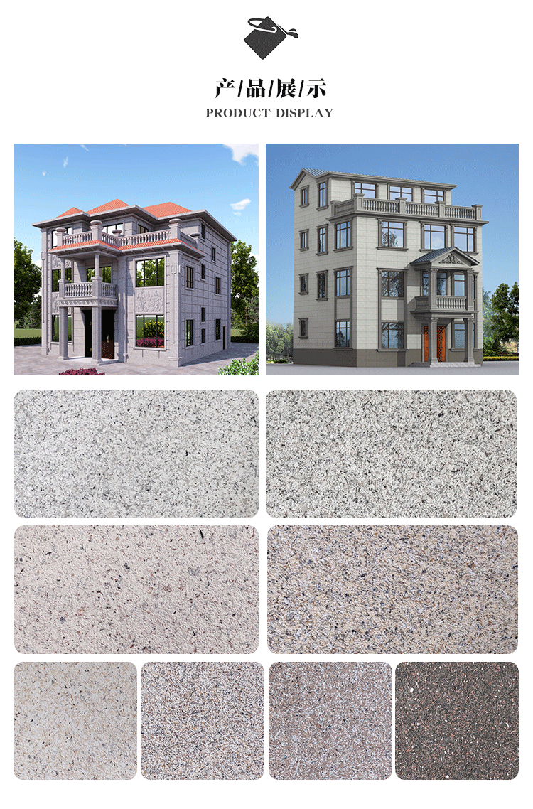 麻砂石兼具真石漆、水包砂等產(chǎn)品的優(yōu)點(diǎn),紋理與質(zhì)感與天然石材效果近似95%以上;同時(shí),麻砂石彩點(diǎn)顏色、大小可控,色彩豐富,產(chǎn)品穩(wěn)定,能更好地貼合各種場合的需求。