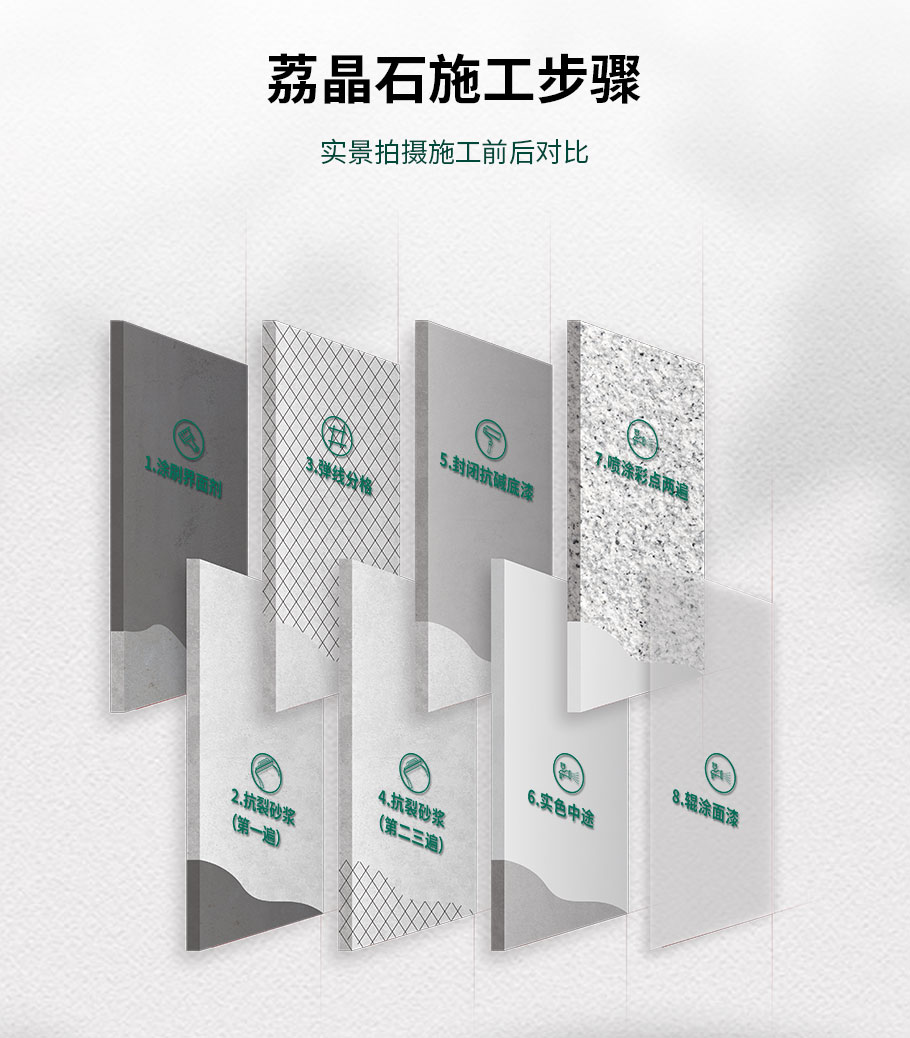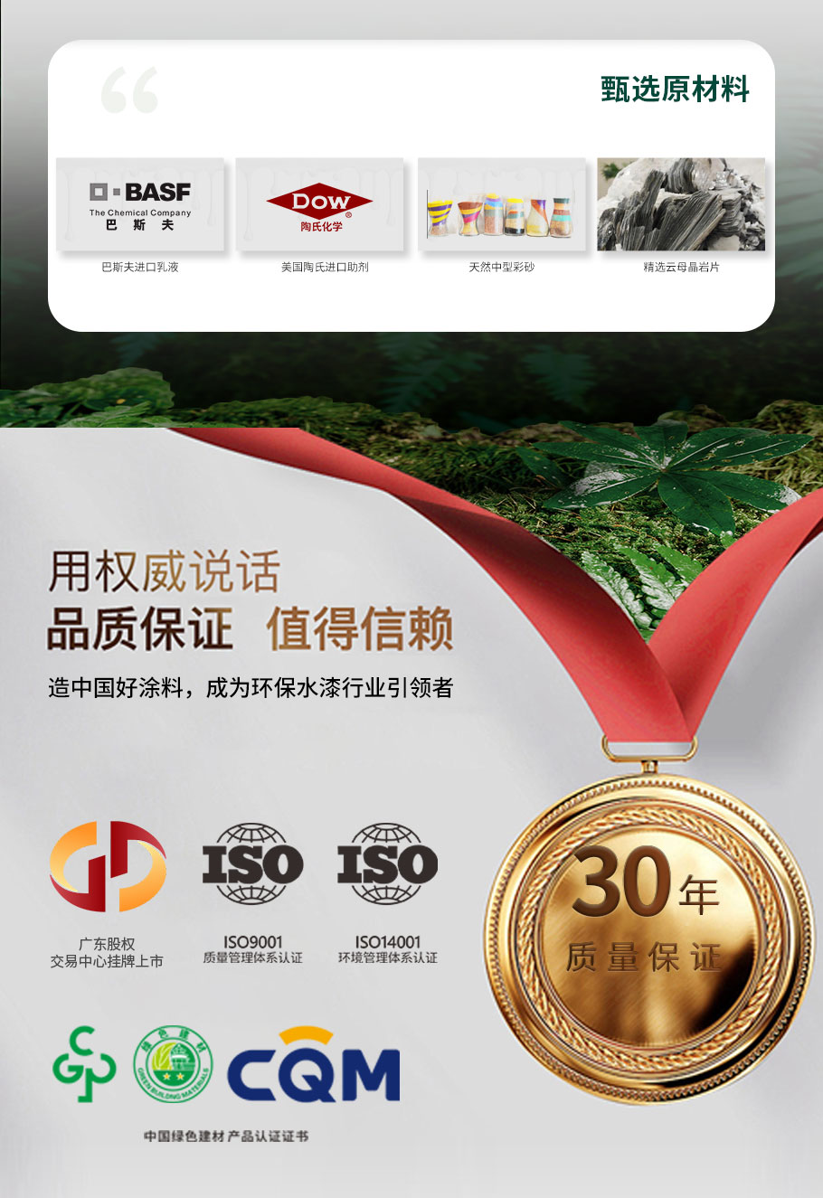 突破仿石技術(shù)瓶頸,將產(chǎn)品性能再度升級。遵循了純凈無添加的原則,采用天然彩砂著色,搭配高端硅丙乳液與巖石晶片打造高品質(zhì)仿石漆,實現(xiàn)了1比1的逼真再現(xiàn)。每一處紋理都細(xì)膩入微,仿佛能感受到天然石材的脈絡(luò)和層次。融入山川韻味,鑄就匠心之作,讓仿石漆走進(jìn)千家萬戶。